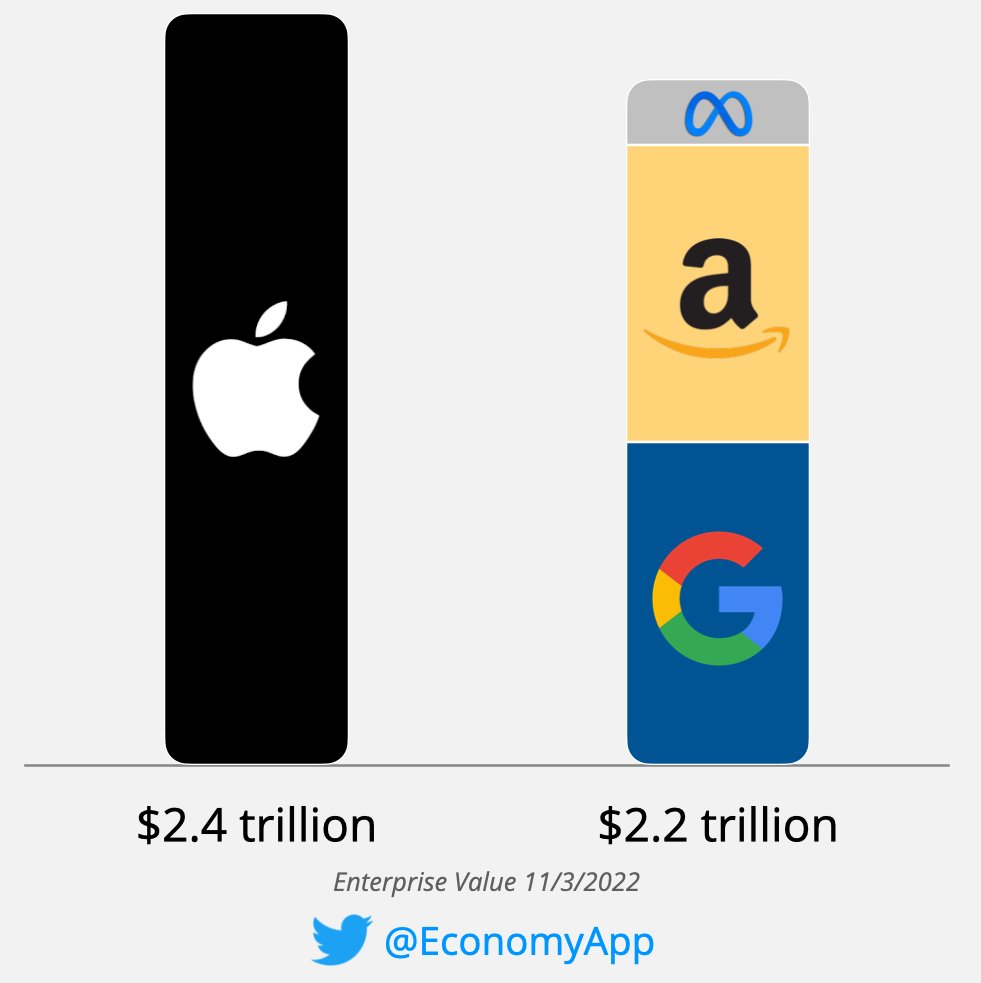 Apple is now worth more than Google, Amazon, and Meta combined. (Via)