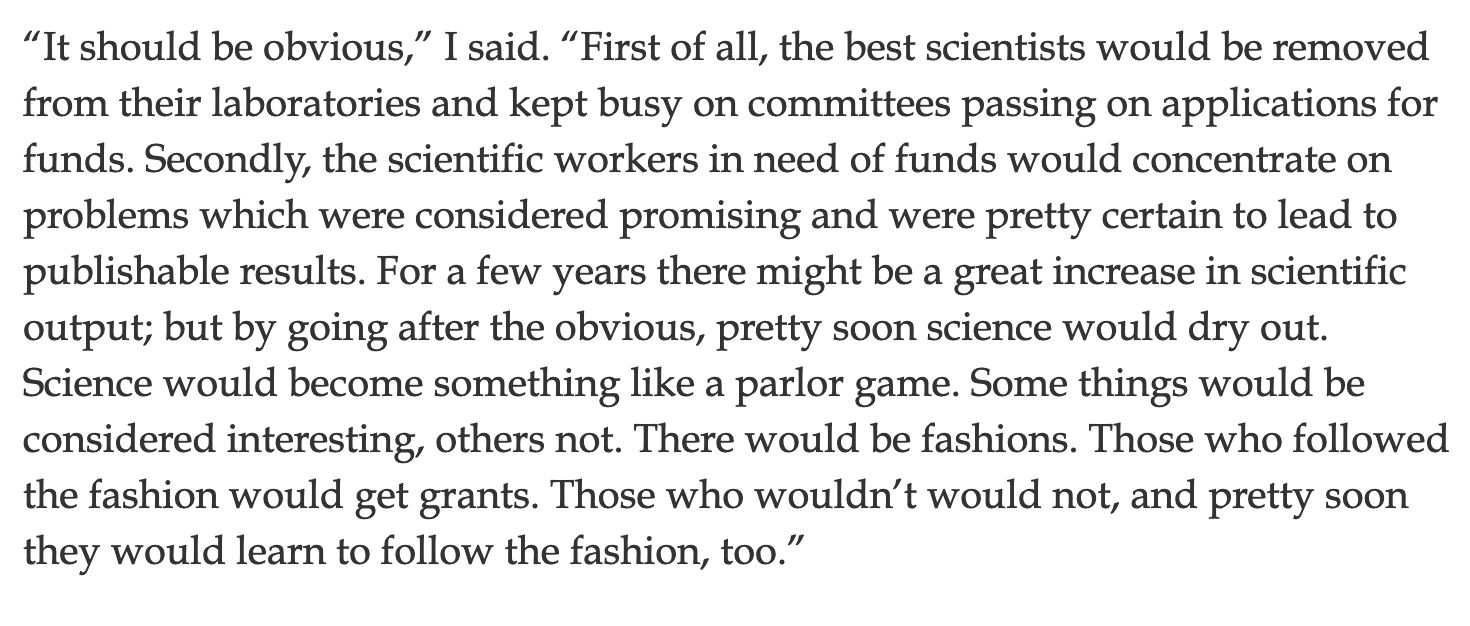 - Leo Szilard forecasting in 1948 what science would be like in the US in the future. Nailed it!