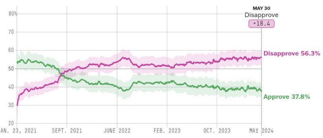 - Joe Biden's approval rating at all-time low following Trump verdict