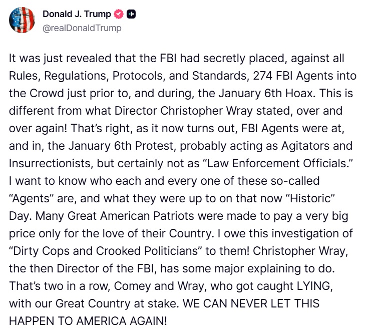 - President Trump on Christopher Wray and Jan 6th. Charges are coming aren't they.