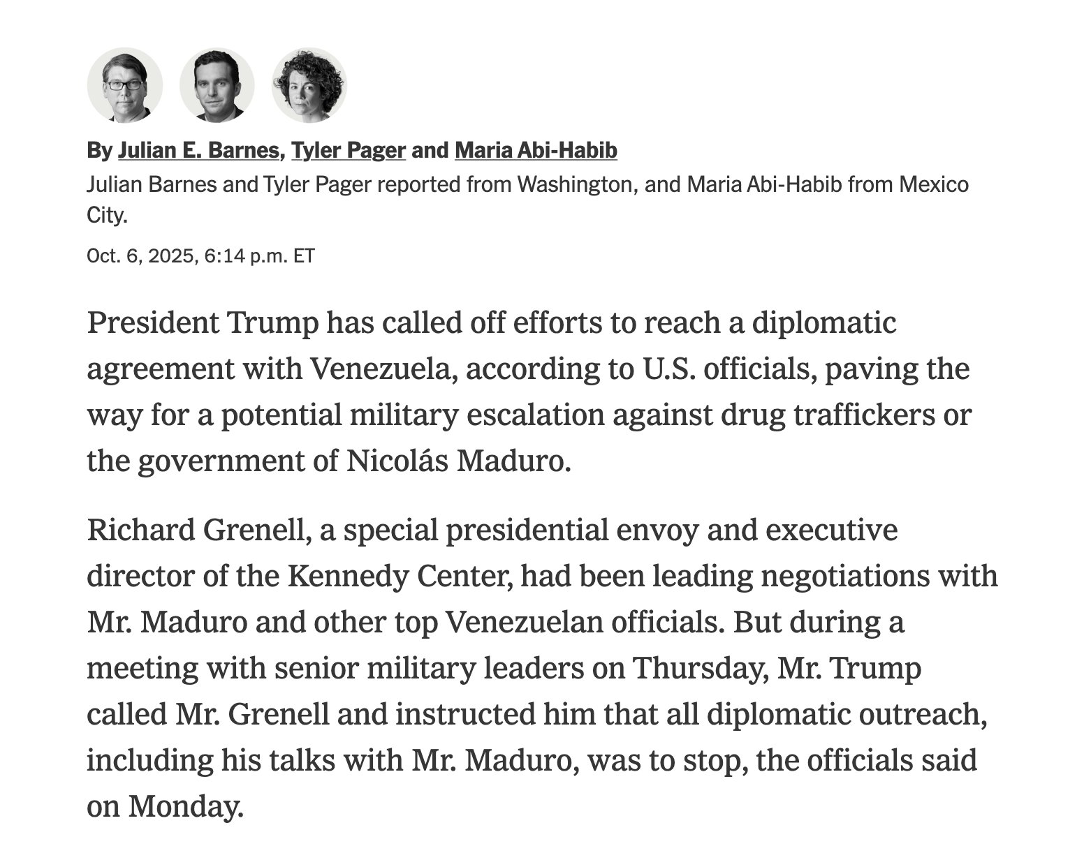 - The first step towards a war with Venezuela. One the one hand it's a bad look for a "man of peace" to start a war but on the other do Democrats really want to support Maduro's dictatorship?