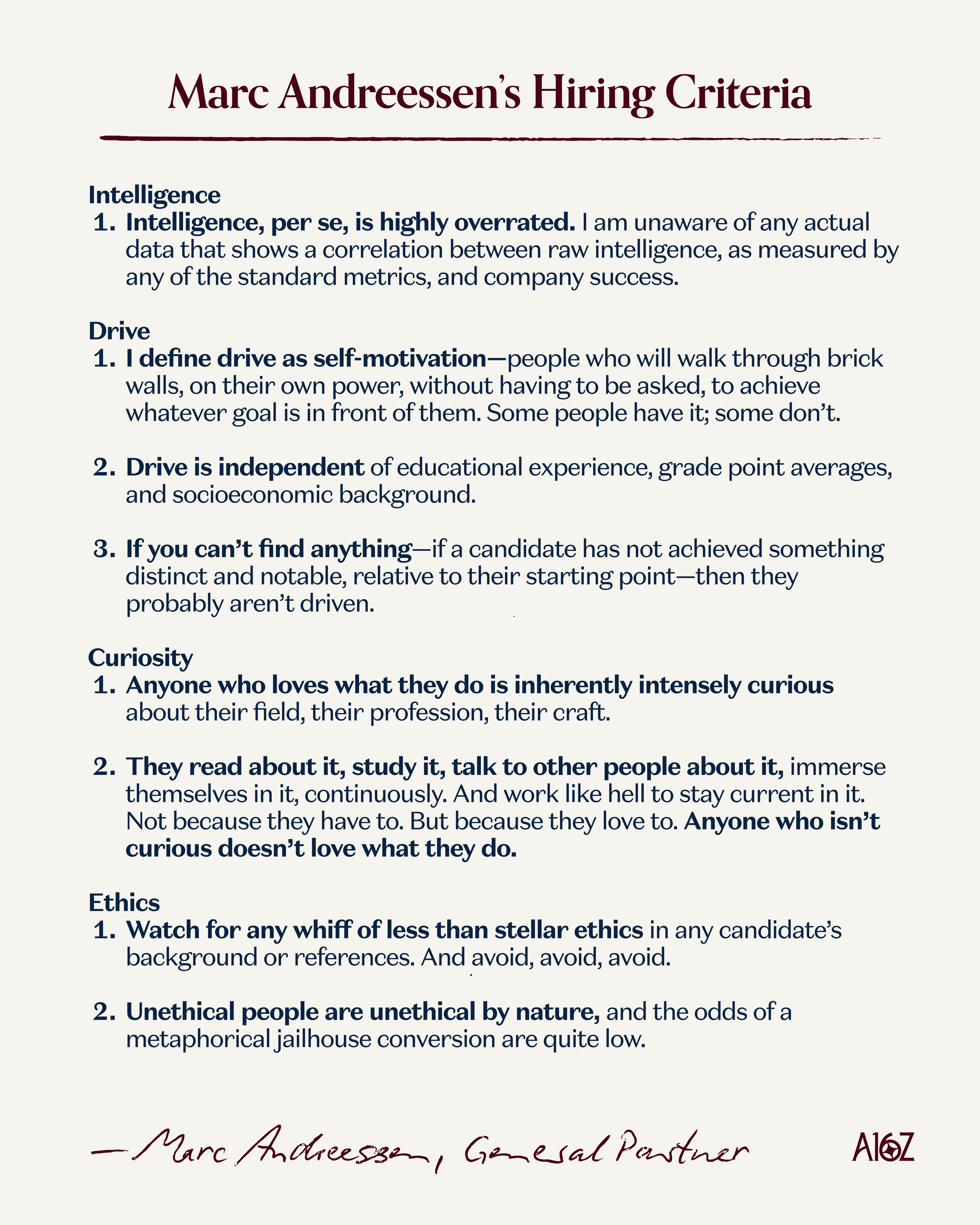 Marc Andreessen's Hiring Criteria